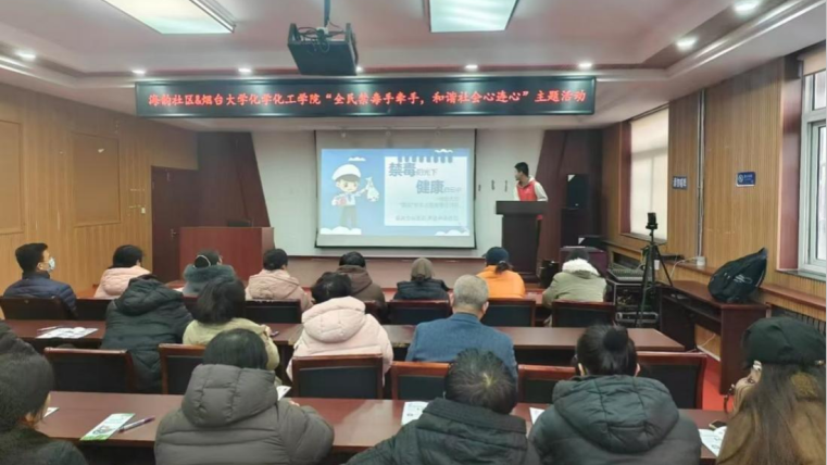 “猎冰”禁毒志愿服务宣讲队与志愿服务部在福山区海韵花园联合开展了以“全民禁毒手牵手,和谐社会心连心”为主题的禁毒活动。